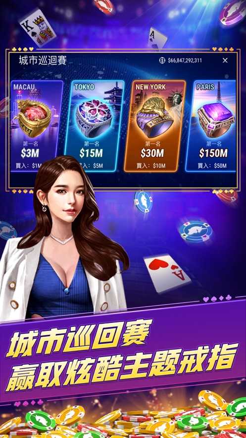2. **锦标赛**:锦标赛是一种固定时间、固定底池的比赛模式,玩家在比赛开始时支付一定的买入费用,竞争争夺奖池中的奖励。锦标赛通常分为多种类型,包括常规锦标赛、快速锦标赛、赏金锦标赛等。