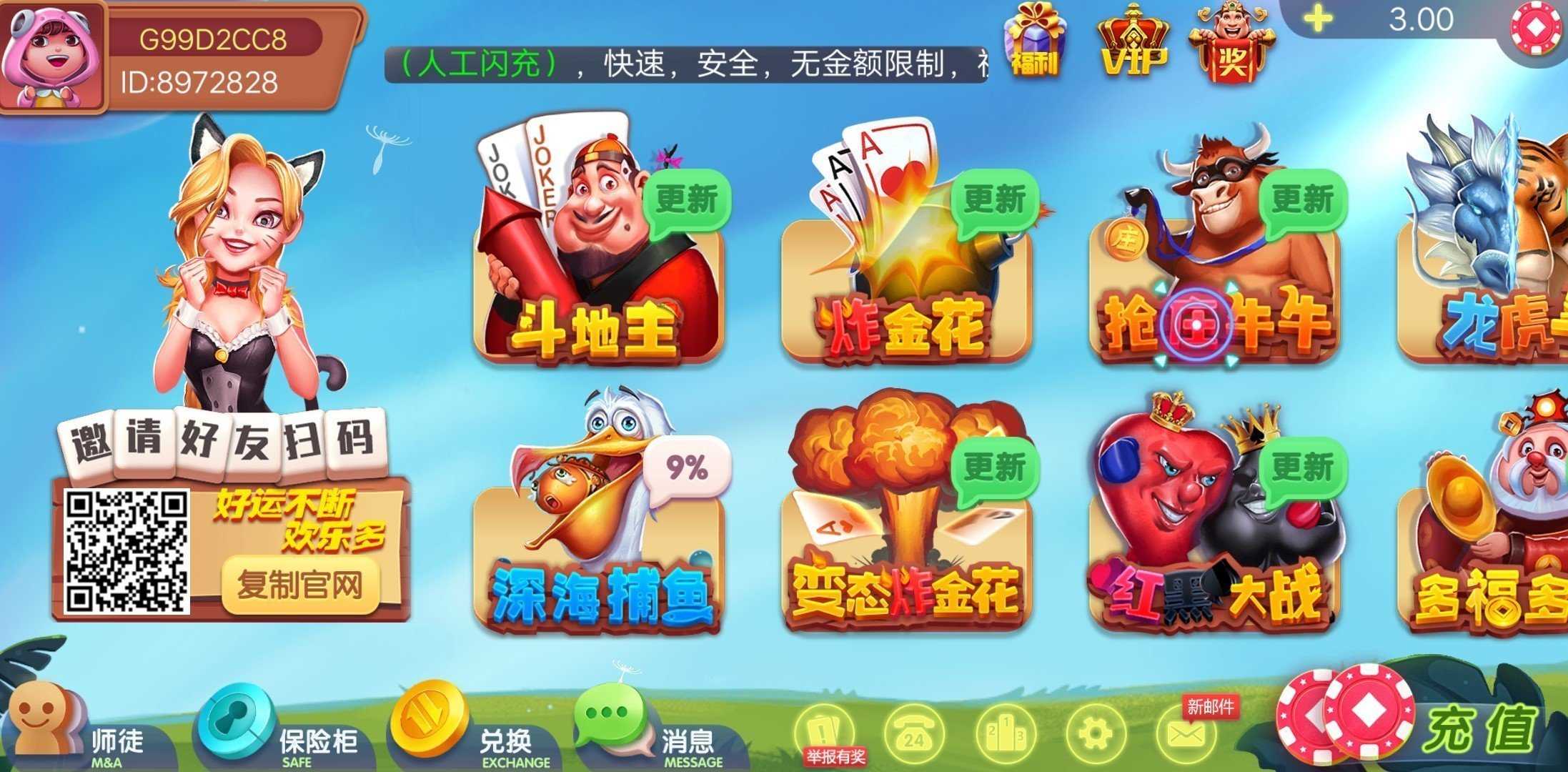 1、斗地主、捕鱼、抢庄牛牛等多款娱乐玩法,更有全新电玩等你体验~