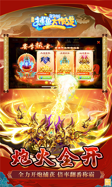 【多人对战】支持万人同服在线,四人联机捕鱼,共同围攻巨型BOSS。黄金龙王、远古冰龙、神兽朱雀等强敌等你来战,成就真正的捕鱼达人。
